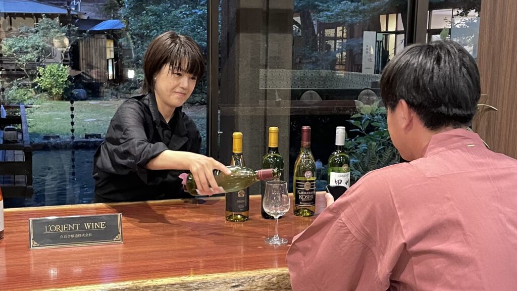白百合醸造の内田社長や専務をお招きしての「メーカーズディナー」や、実際の醸造現場を巡る「スペシャルワインツアー」も開催。さらに、グループ施設「糸柳こやど ゆわ」では、ソムリエの秋葉様をお迎えし、ラウンジでの無料試飲イベントを定期的に開催しております。専門家との交流を楽しみながら山梨ワインの奥深さに触れていただける貴重な機会となっています。